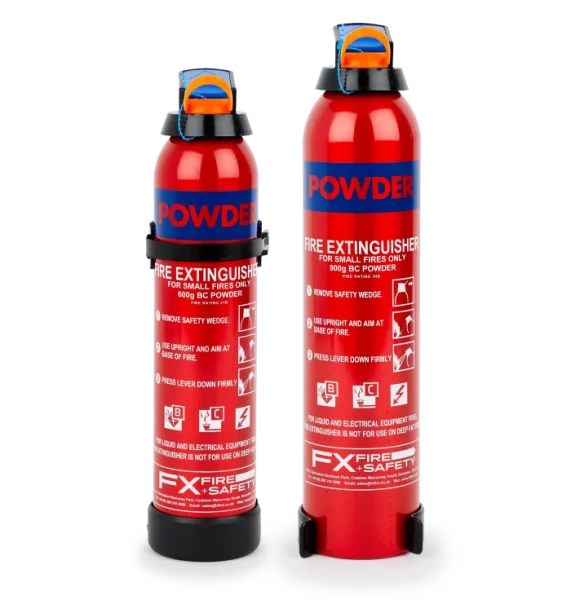 600g BC Dry Powder Fire Extinguisher with mounting bracket.
